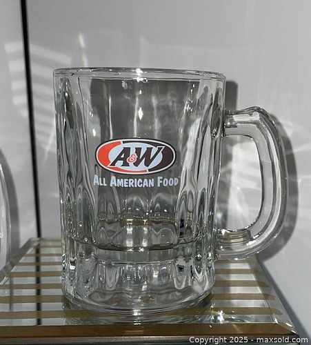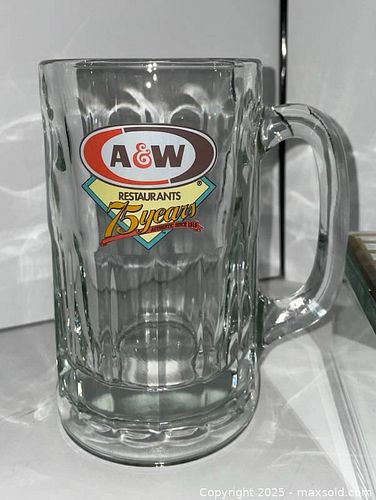 Vintage A&W Restaurants glass mug commemorating the company's 75th anniversary. Dimensions: Mini Mug is 3.5" tall Pickup category timeslot {A}