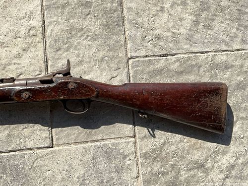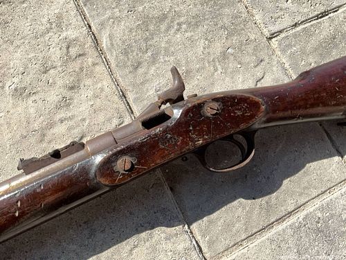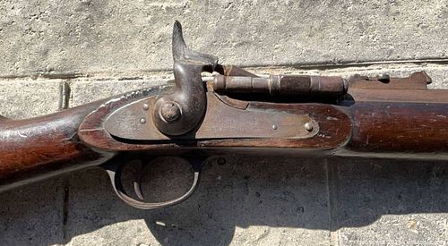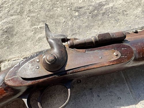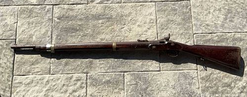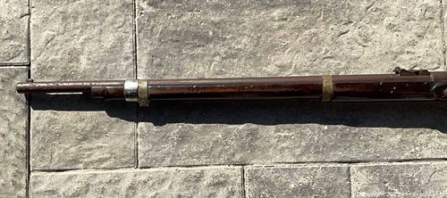 1861 Enfield Flint Lock Total length 48” Markings include a Crown over VR, 1861 Enfield, DC (engraved into wood)