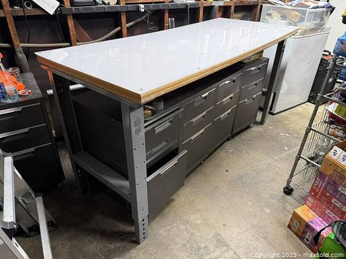 Industrial Adjustable Height Steel C-Channel Leg For Workbench, 36"D with White Acrylic Top, 6 Feet Wide, Height Adjustable