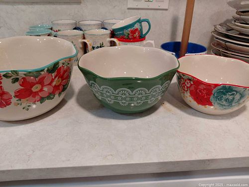 Pioneer Woman- Mixing Bowls, Cereal Bowls, Mugs, Papertowel Holder. 2 small plates.